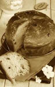 E’ una tradizione che mia madre segue da quando era bambina, appresa da sua mamma Rosa e da sua nonna Giulia. Che a loro volta avevano imparato dalle loro famiglie d’origine. Nessuna di queste era danarosa, anzi… ma la domenica di Pasqua la colazione doveva essere imbandita riccamente. “Per devozione”, come mi ripete ancor oggi mia mamma. Del resto, la pagnotta e la ciambella le preparavano le “azdore” di casa; alle uova ci pensavano le galline; il maiale era stato lavorato a gennaio assieme agli altri contadini del vicinato; il vino veniva dalla piccola vigna di famiglia. Da comprare, restava il caffè… L’alimento più particolare di questa “tavolata” era, senz’altro, la pagnotta pasquale che appariva sul desco quella domenica (oggi i negozi di pasticceria ve la mettono a disposizione diversi giorni prima), e accompagnava i pranzi e cene della famiglia anche nei giorni seguenti, fino a esaurimento. Non era contemplato “scartare” del cibo.