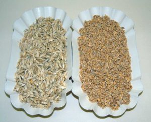 Semi di Farro piccolo con e senza glume. Foto di Bmk da wikipedia.org. In copertina una foto tratta da pixabay.com.